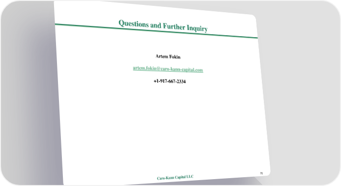 Questions and Further Inquiry ArtemFokin [email protected] +1-917-667-2334 Caro-Kann Capital LLC 76