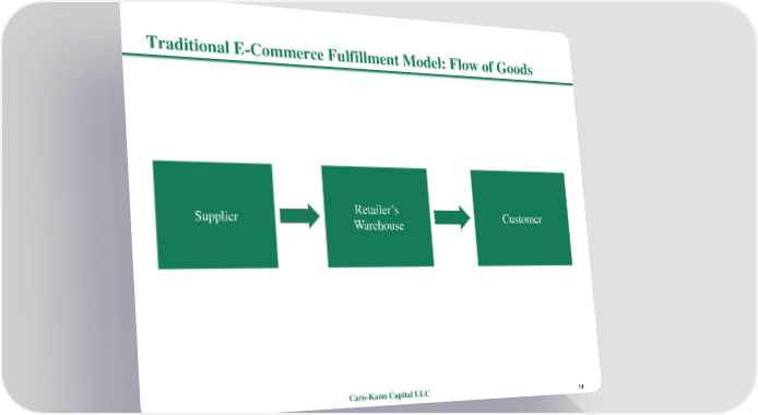Traditional E-Commerce Fulfillment Model: Flow of Goods Supplier Retailer’s Customer Warehouse Caro-Kann Capital LLC 14
